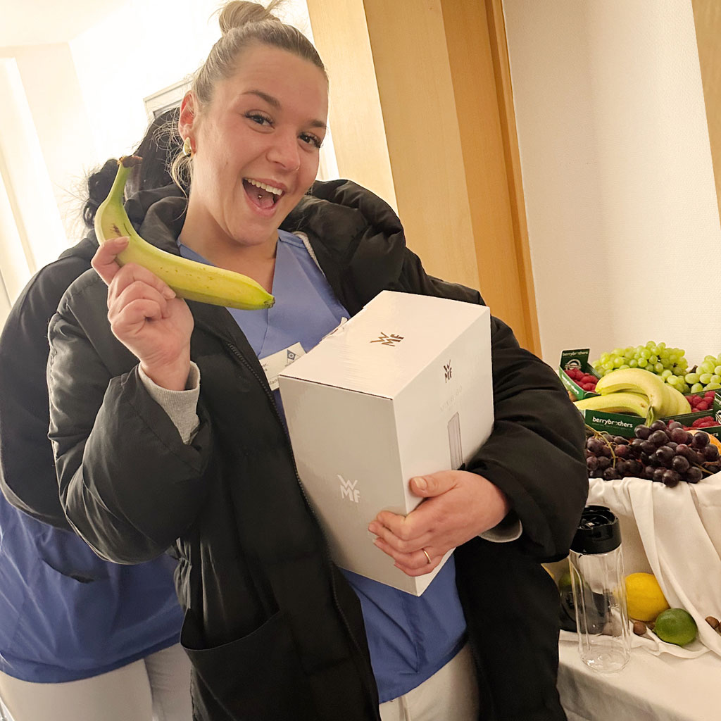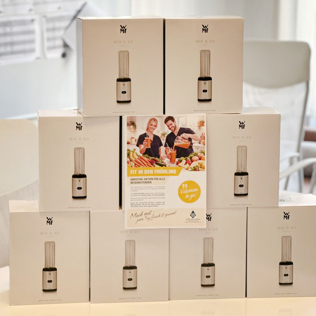 Besonders erfreulich: Mitarbeitende, die bei der letzten Aktion noch nicht teilnehmen konnten, erhalten einen eigenen Mixer, sodass wirklich alle die Möglichkeit haben, mitzumachen und die Smoothie-Aktion voll auszukosten.