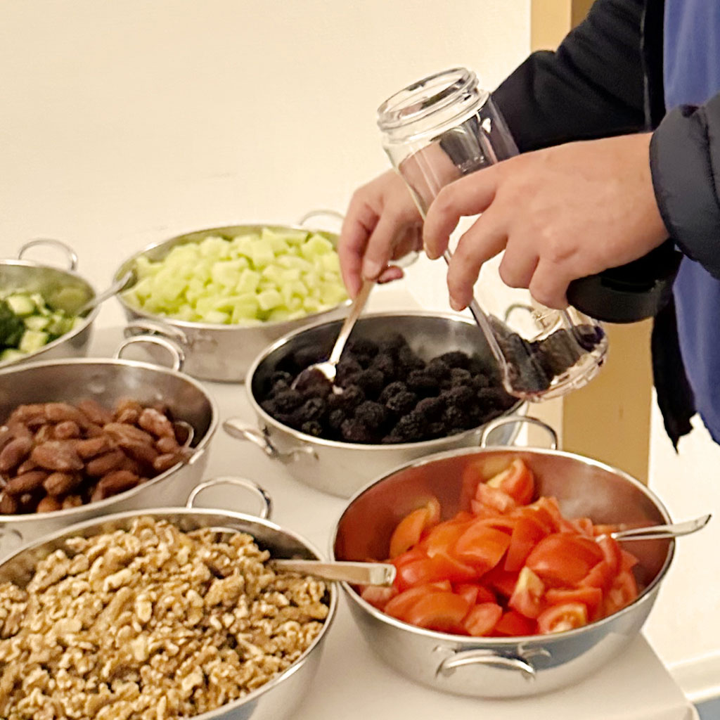 Im Haus Hellersen in Lüdenscheid ist unsere Aktion „Fit in den Frühling“ gestartet. Bis zum 03.04. steht unseren Mitarbeitenden täglich ein frisches Obst- und Gemüsebuffet zur Verfügung, aus dem sie sich individuell Smoothies zubereiten können. Ziel der Aktion ist es, Gesundheit und Wohlbefinden im Arbeitsalltag zu fördern und gemeinsam energiegeladen in die Frühlingssaison zu starten.